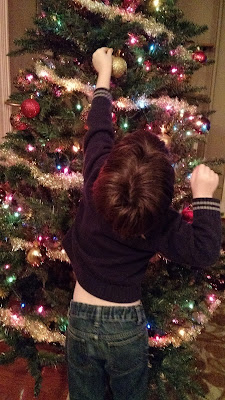 The first week of December Nick got down ALL of our decorations and the boys helped me trim the tree! We had an unusually warm day in the 50s, so that was perfect timing to put the outside lights up.